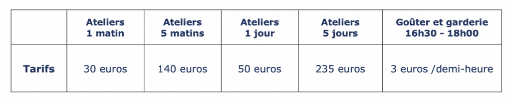 14h00 – 15h30 : Atelier guidé par l’éducatrice 15h30 – 16h30 : activités libres